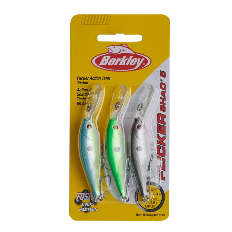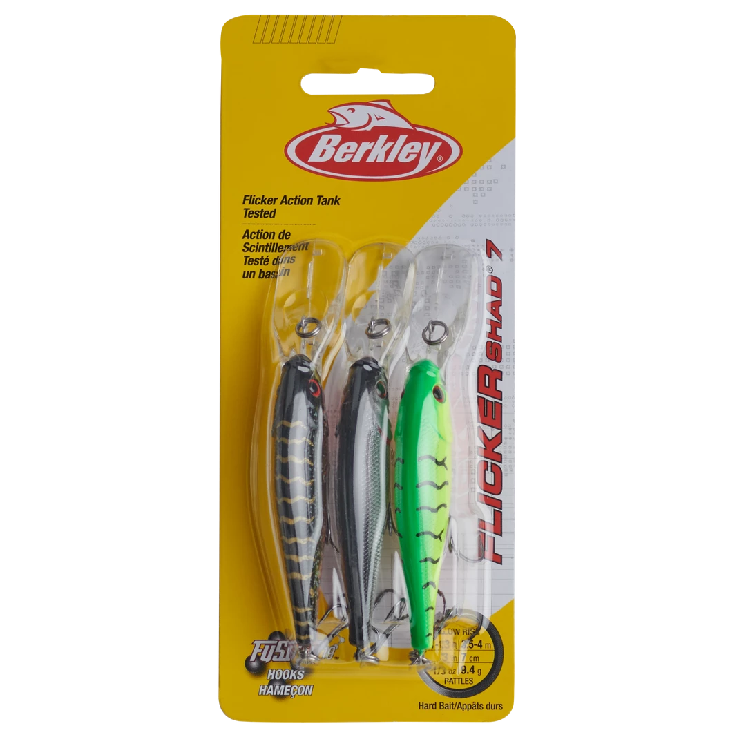 Put our Berkley® Flicker Shad Pro Pack in your tackle box to save a bit and be ready for changing water conditions. Designed by pros for optimal action, the #7 Flicker Shad is a fish-catching machine, with a unique rattle and extra-sharp black-nickel hooks; you’ll find it deadly for both trolling and casting. Pro Pack #2 includes 3 crankbaits – 1 each of these exclusive colors: Slick Mouse, Slick Fire tiger, Slick Purple Candy.