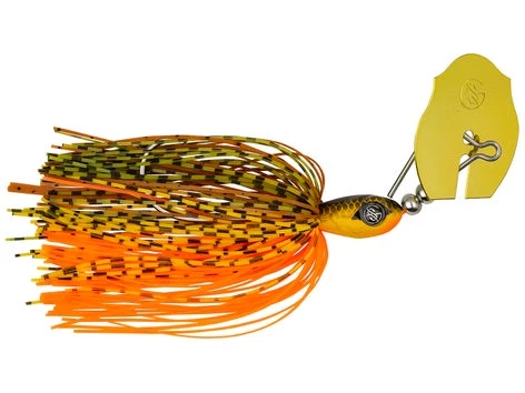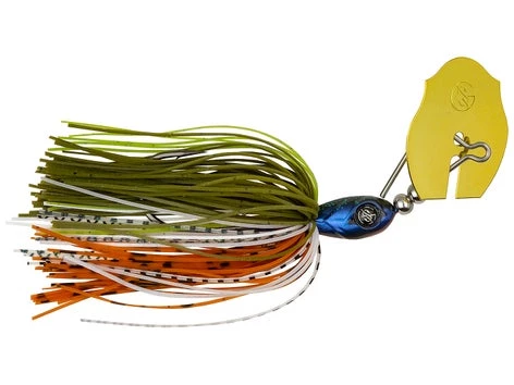 The Clickbait bladed jig closely resembles a feeling fish on the move, and can be used year round to target aggressive bass feeding shallow on baitfish, crawdads, and other natural forage. Each jig is fitted with hand-tied skirts that will hold up to numerous fish catches and they are manufactured in a multitude of proven, fish-catching color patterns. The Googan Squad Clickbait Bladed Jig utilizes a unique oversized head blade design that allows you to use a fast or aggressive retrieval while still keeping the bait down in the strike zone where the big girls roam.