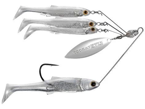 Delivering a compact presentation that mimics a tightly schooled ball of frightened baitfish, the LIVE TARGET Baitball Spinner Rig is the latest addition to the tremendously successful Baitball Series. Featuring a combination of anatomically accurate baitfish swimbaits with the added flash and vibration of a spinner blade, the Baitball Spinner Rig is a mouth-watering morsel that gamefish cannot resist. Outfitted with a single razor-sharp extra wide gap hook that is located on the “target” swimbait, the “target” swimbait is positioned just below the squadron of “teaser” swimbaits to create a funneling effect that draws bass into striking the hooked “target” swimbait.