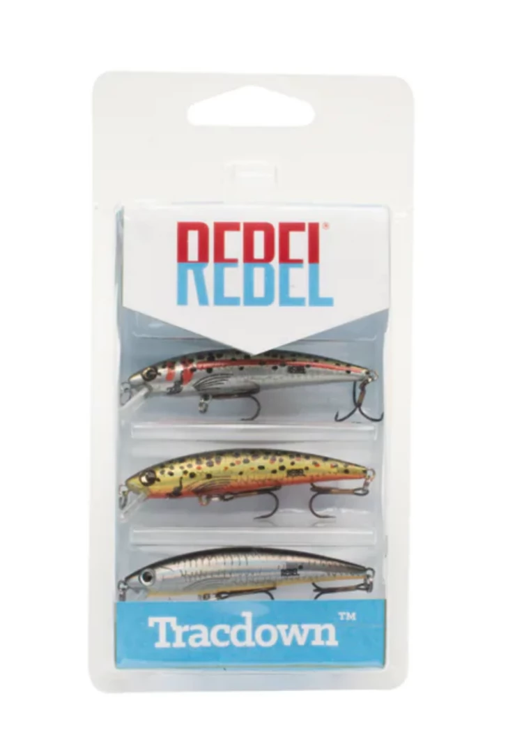 The Rebel Tracdown Minnow kit includes 3 popular small Rebel Tracdown Minnows in one convenient package.