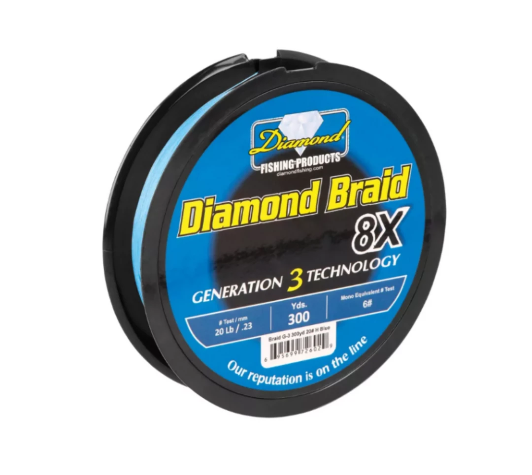 Diamond Generation 3 Diamond Braid 8X Fishing Line delivers affordable performance for the most challenging situations in fishing. This advanced 8-carrier Spectra® braid offers incredible strength with virtually no stretch, making it ideal for virtually all saltwater applications, including big game fishing. Its bonded color-fastness ensures consistent fade resistance through the toughest conditions. Excellent knot integrity.