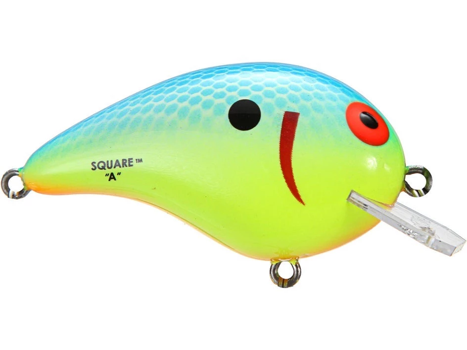 The Bomber Square A Square Lip Crankbait is designed to attack those tight spots in shallow water where bigger shallow cranks can’t fit, and its also a great choice when you simply need to downsize your presentation. Built with a unique square bill with chamfered corners, the Bomber Square A Square Lip Crankbait maneuvers easily over fallen timber and thick cover. Its compact profile and nose-down attitude create an irresistible wide-wobbling presentation as it moves through water and deflects off of structure. Available in a variety of sizes and colors, the incredibly durable Bomber Square A Square Lip Crankbait is sure to get the job done time after time, after time, after timeโฆ