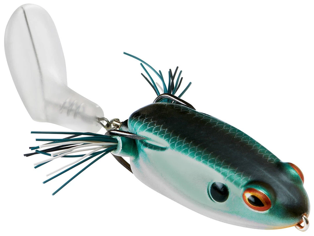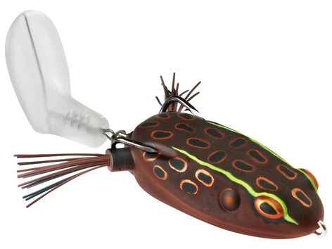 Delivering a loud topwater buzzing action that leaves all other frogs in its wake, the Booyah Toad Runner Frog elicits bone-jarring strikes that are not for the faint of heart. It is built around a modified Booyah Pad Crasher body with added side rails to help the Toad Runner plane more easily and stay upright. A 360-degree rotating tail creates a plopping sound and hard churning action that fish cannot resist.