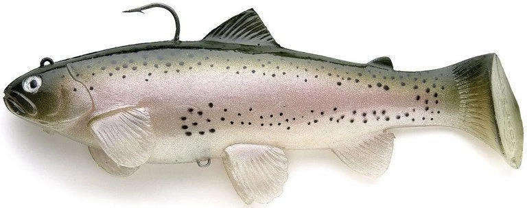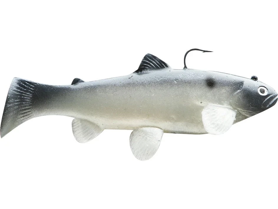 Soon after the original Castaic baits hit the market with such force, the need was recognized for a more realistic swimbait. This swimbait needed to be heavy enough to reach the bottom of deeper waters and swim faster over shallow structure. When word leaked out that the designers at Castaic Softbaits were creating such a swimbait that was catching fish for the pro-staff, there was great excitement among the big-bait aficionados. The swimbaits on this page are what caused all the excitement and anglers everywhere are paying homage to these Castaic Swimbaits. These baits have a special harness that is actually molded into the bait itself. This sort of feature provides a ring on the bottom of the lure so that a split ring and a treble hook can be added. These baits are available in trout and baitfish colors and are effective in all four sizes. The larger baits are quite heavy and should not be thrown on light tackle, so be sure to check out our selection of rods that are designed to throw the big plastic.