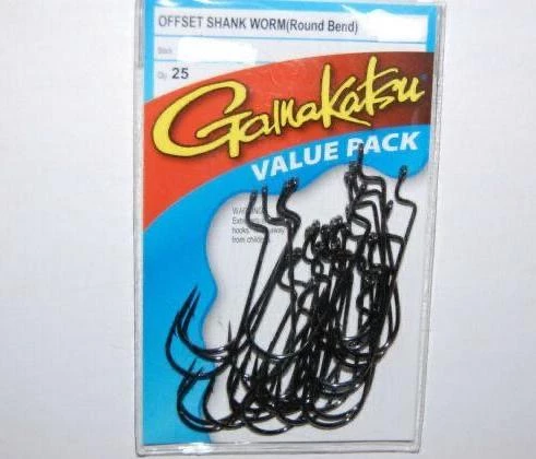 Increase the chances of a successful day on the water with Offset Shank Round Bend Worm Hooks. To keep your bait in place and allow you to create precise presentations, these hooks feature an offset shank. Gamakatsu® Offset Shank Round Bend Worm Hooks also have a round bend that gives fish a larger area to bite and –along with sharp points and barbs – offers solid hooksets so you don’t lose your catch.
