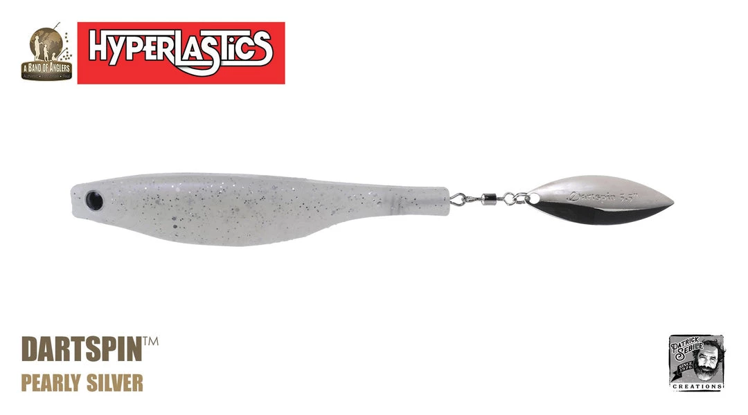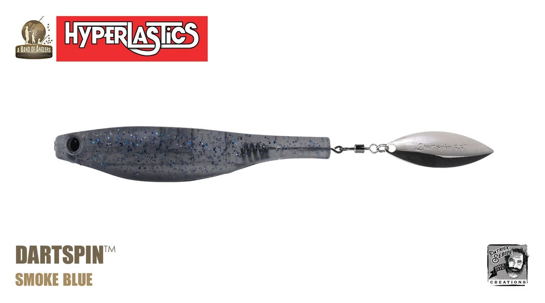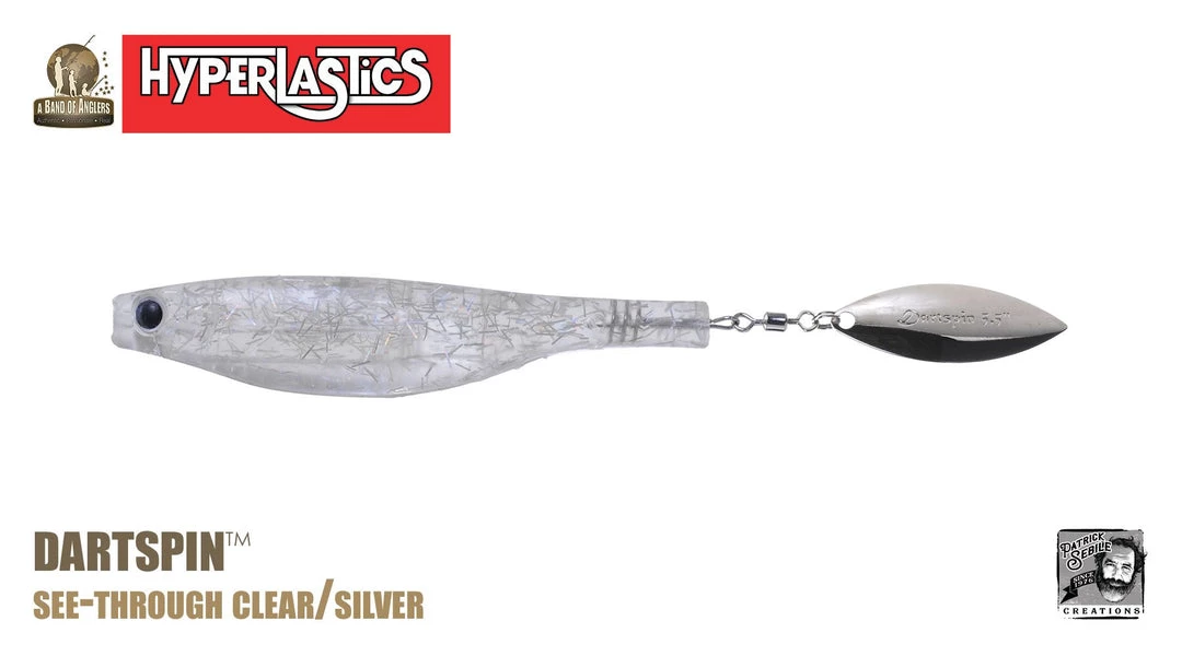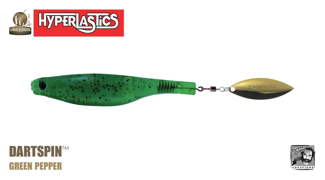 A Patrick Sebile design, the Dartspin is a very versatile and superiorly designed, SofTough plastic bait with a minnow shape and a willow blade solidly embedded into its tail. Its body can be rigged many ways while the willow leaf blade adds flash and vibration – weedless on a swimbait hook, jig head, weighted belly hook, dropshot, Texas/Carolina fishing rigs, drop shot, or a super strong and compact hook for big fish, etc. –. Great as a trailer bait on swimming jig, rubber jig, spinnerbait, buzzbait and others! The Dartspin is designed to do what you want: cast and retrieving, trolling, twitching, pitching, jigging into heavy cover or open water, fresh or salt, shallow or deep. No matter the action, it follows what you want it to do as it offers a wide variety of action depending on how it is used, making the Dartspin one of the most versatile lures ever designed. The Dartspin comes in colors and sizes to catch anything, anywhere!