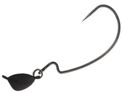 The pivot Head was designed to be used on swim baits. They can be fished individually or in multiples on umbrella rigs. The combination of the “bean” shaped head and the split ring joint between the head and hook allow for an erratic swim pattern that drives fish crazy. The weedless version is designed to be Texas rigged with the hook point riding on the top of a bait. When fishing in open water conditions, the Straight shank version, featuring Cutting Point, can be used for higher hook-up rates. The heads come in a black matte finish and the hooks are black chrome
