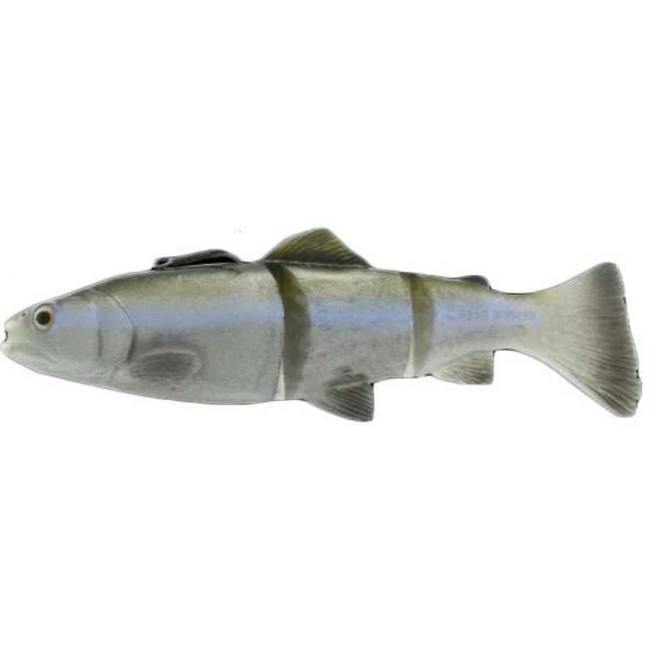 The Savage Gear 3D Line Thru Trout lures are similar to live bait. They are based on a 3D scan of a hatchery trout. This lure is reinforced with nylon mesh to offer a one of a kind silent line thru soft plastic jointed swimbait. The top hook line thru design means this bait can be fished around heavy cover and throughout the entire water column. A special slot in the bait?s harness anchors the hook in the harness not the soft plastic body of the bait. The hook will not tear through the soft body material on casts or hook sets.