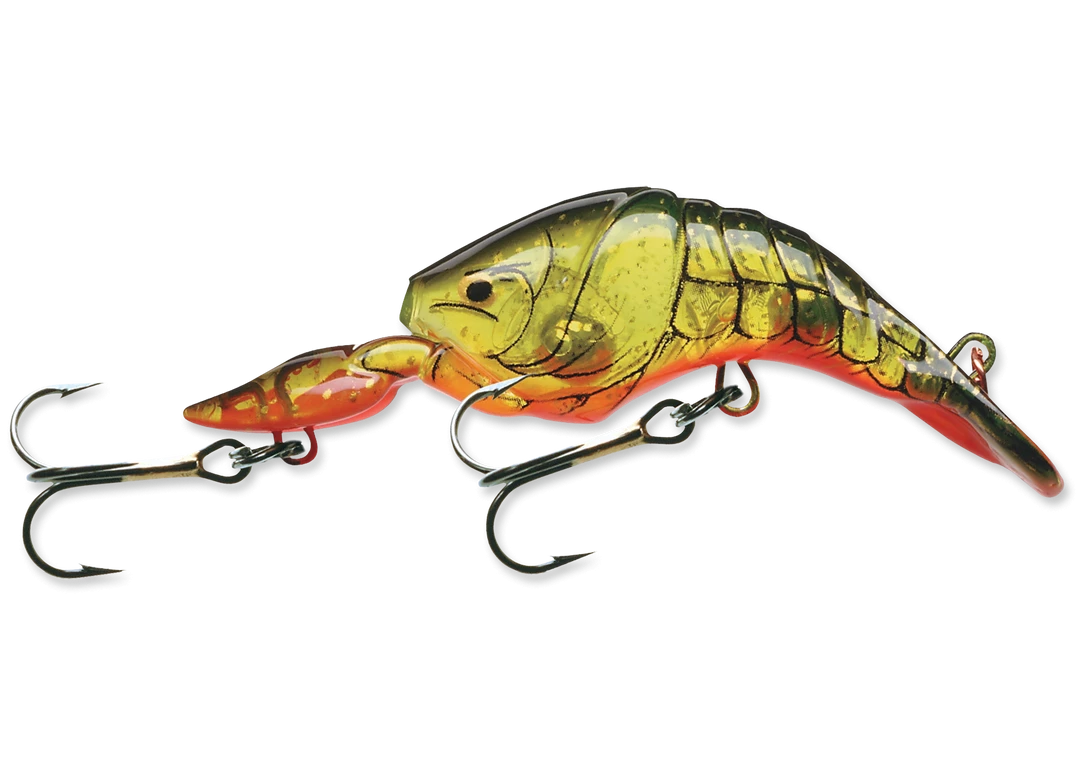 A crawfish on steroids. It has a wide, vibrating action, a loud rattle and claws that fall in an up “defense” position like a natural craw. With many different detailed craw patterns fish won’t be able to resist this lure.