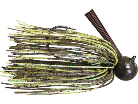 The Tour Grade football head Jig is the ultimate jig for Deep water fishing. The wide football shaped head gives better feel and helps the bait stand- up on the bottom. The flat eye line tie helps keep the line knot and jig in the proper position and the extra sharp Gamakatsu 60 degree round bend hook aids in hook sets. It also features durable powder coated paint, color coordinated weedgaurds and premium skirts for lifelike look and action.