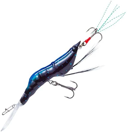 The Moe-B Shrimp has a super tight wiggling action and can be fished with a fast or slow darting motion. Cast, retrieve, twitch, and pause after each twitch; the shrimp slowly sinks, inducing strikes on the fall.