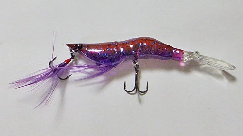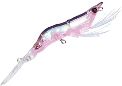 The Duel Hardcore Moe-B 50S Shrimp is a realistic looking, hard bodied, slow sinking jerkbait The design of this lure makes the Shrimp appear natural. Other lifelike details that make this lure irresistible to fish are the fine feather legs and the rear swimming nature of the lure.