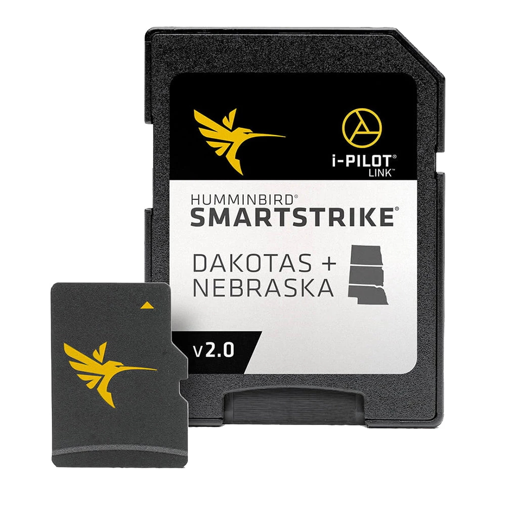The Humminbird SmartStrike Dakotas + Nebraska Edition, Version 2, is a micro map card and SD adapter with 455+ lake maps, including 122 High Definition lakes from ND, SD and NE.