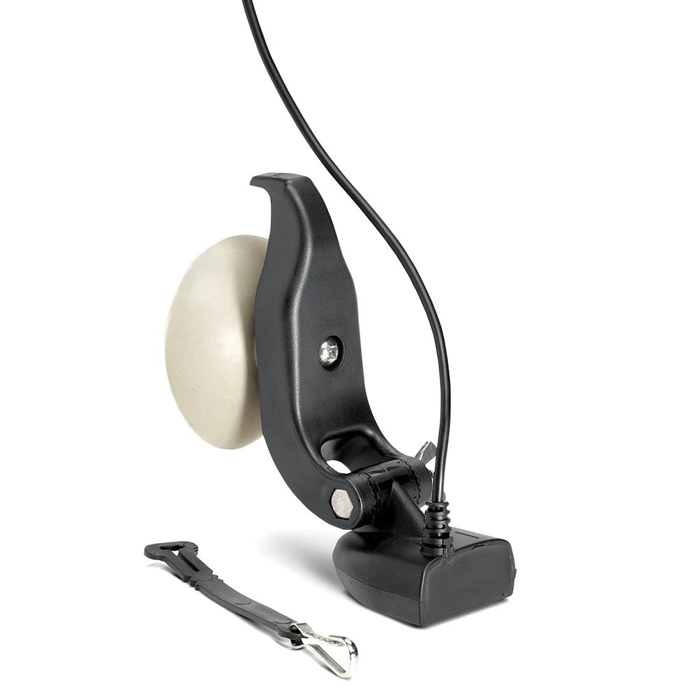 Portable Dual Spectrum CHIRP Transducer supports Dual Spectrum CHIRP 2D Sonar with high frequency beam and wide cone angle, offering CHIRP range of 150-220kHz and max depth of 1200ft. Suction cup mount adheres to smooth surface hulls for easy installation. Includes all required mounting hardware, built-in temperature sensor and 20’ cable. Not recommended for high speeds.Â