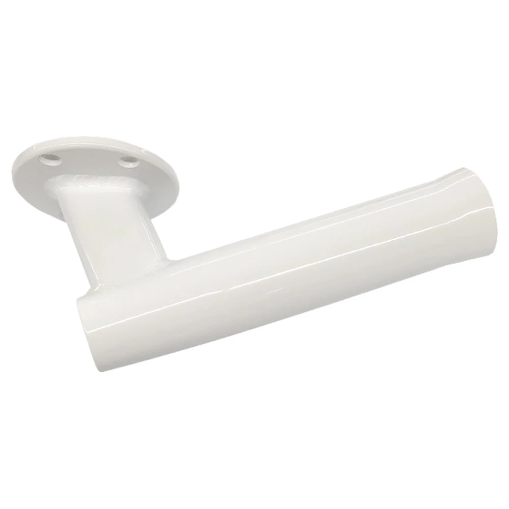 Bolt-on king fish rod holder. Designed to mount under the hardtops, for King Fish. They are also great for Stripper Bass and running Mojos. Powder-coated white to match most hardtops. Mount with four 1/4″ bolts, hardware not included. Please measure your hardtop before ordering.
