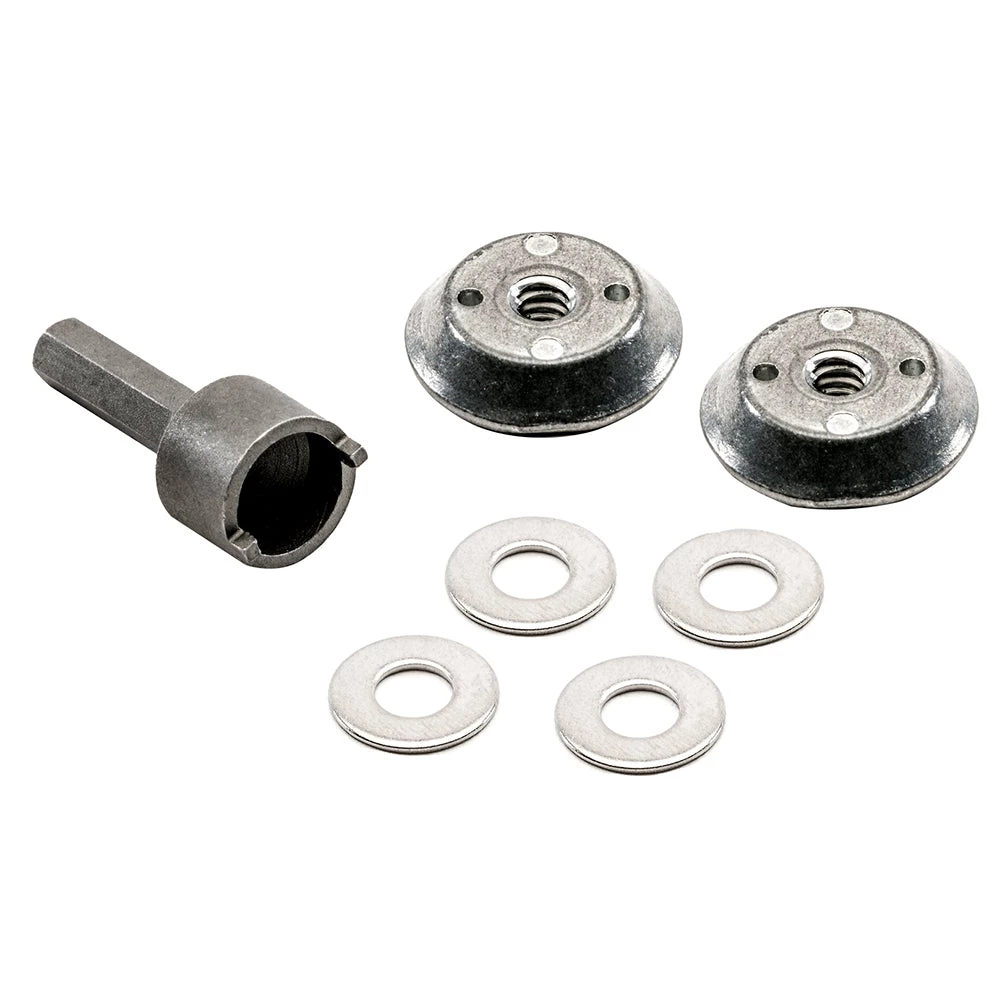 This Security Nut Kit from RIGID Industries makes a potential thief’s job much more difficult. It includes two (2) 2.25 x 20 spanner nuts, four (4) spacer washers, and one (1) 1/4″ hex nut bit. This kit is designed to work with cradle and weld-on mounts.