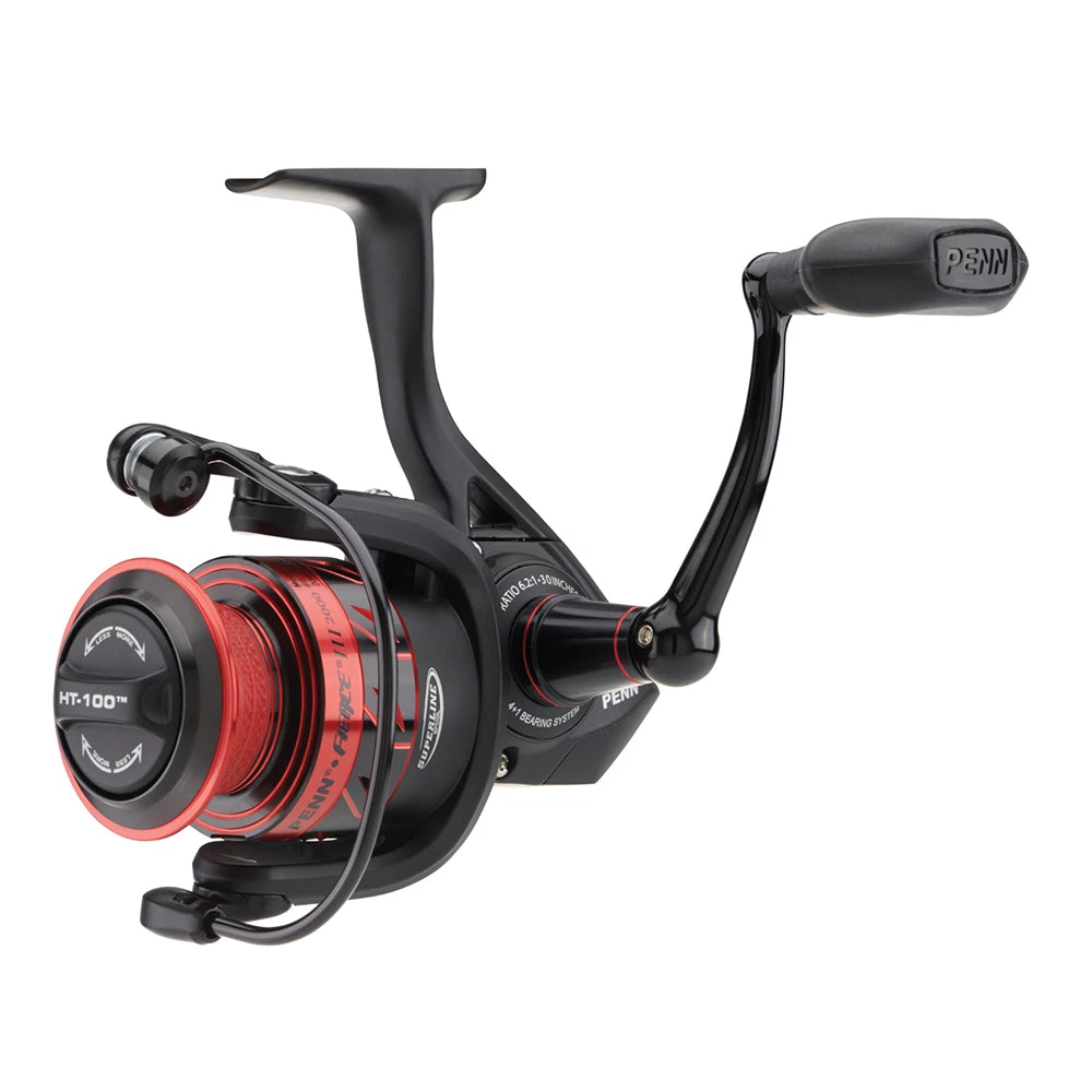 The PENN® Fierce® III spinning reels are available in a range of sizes, from 1000 to 8000. Featuring a full metal body and sideplate, along with PENN HT-100â„¢ carbon fiber drag washers, the Fierce III can handle anything inshore or nearshore. A 4+1 shielded stainless steel ball bearing system ensures smooth retrieves while the heavy-duty aluminum bail wire and superline spool allow for easy line management.Â