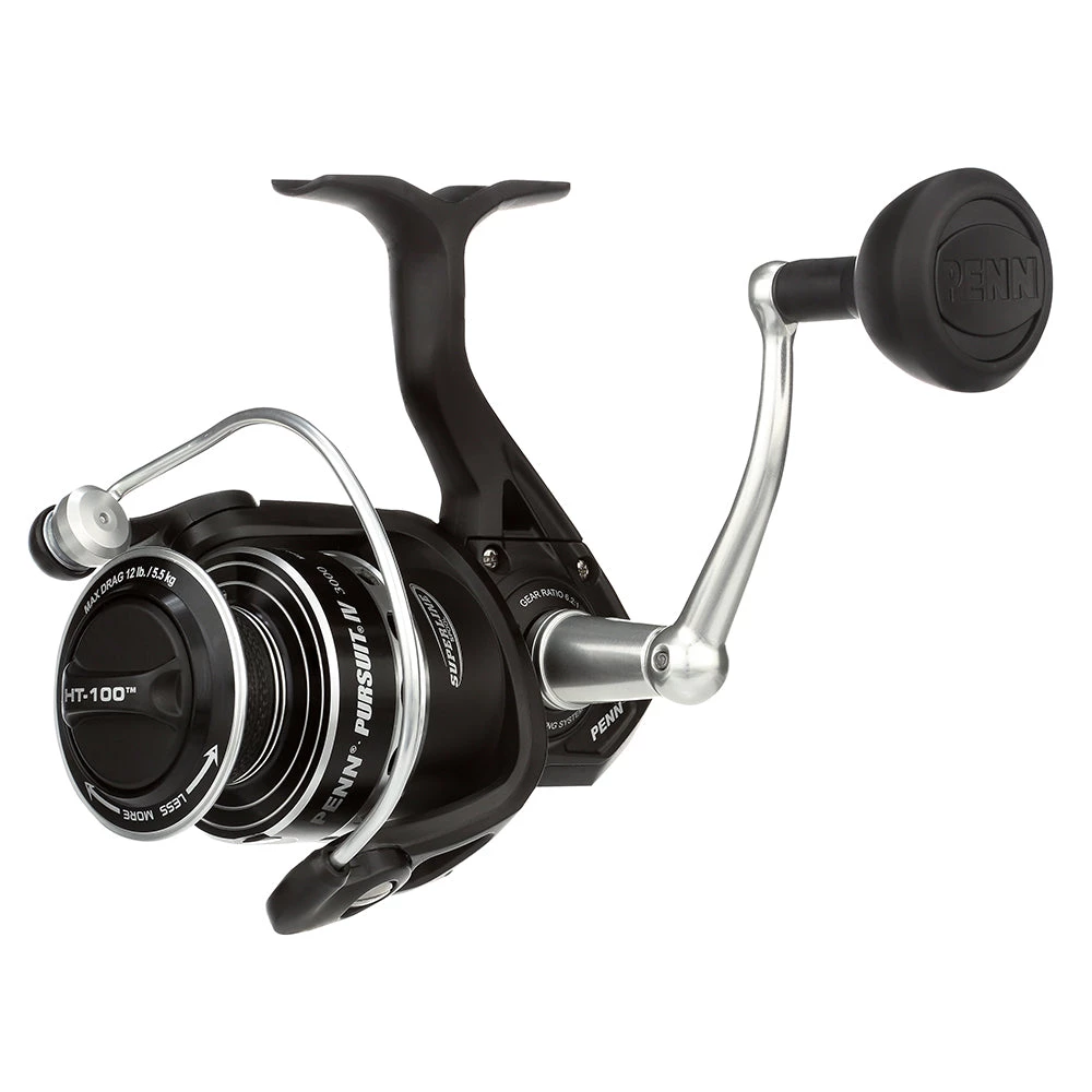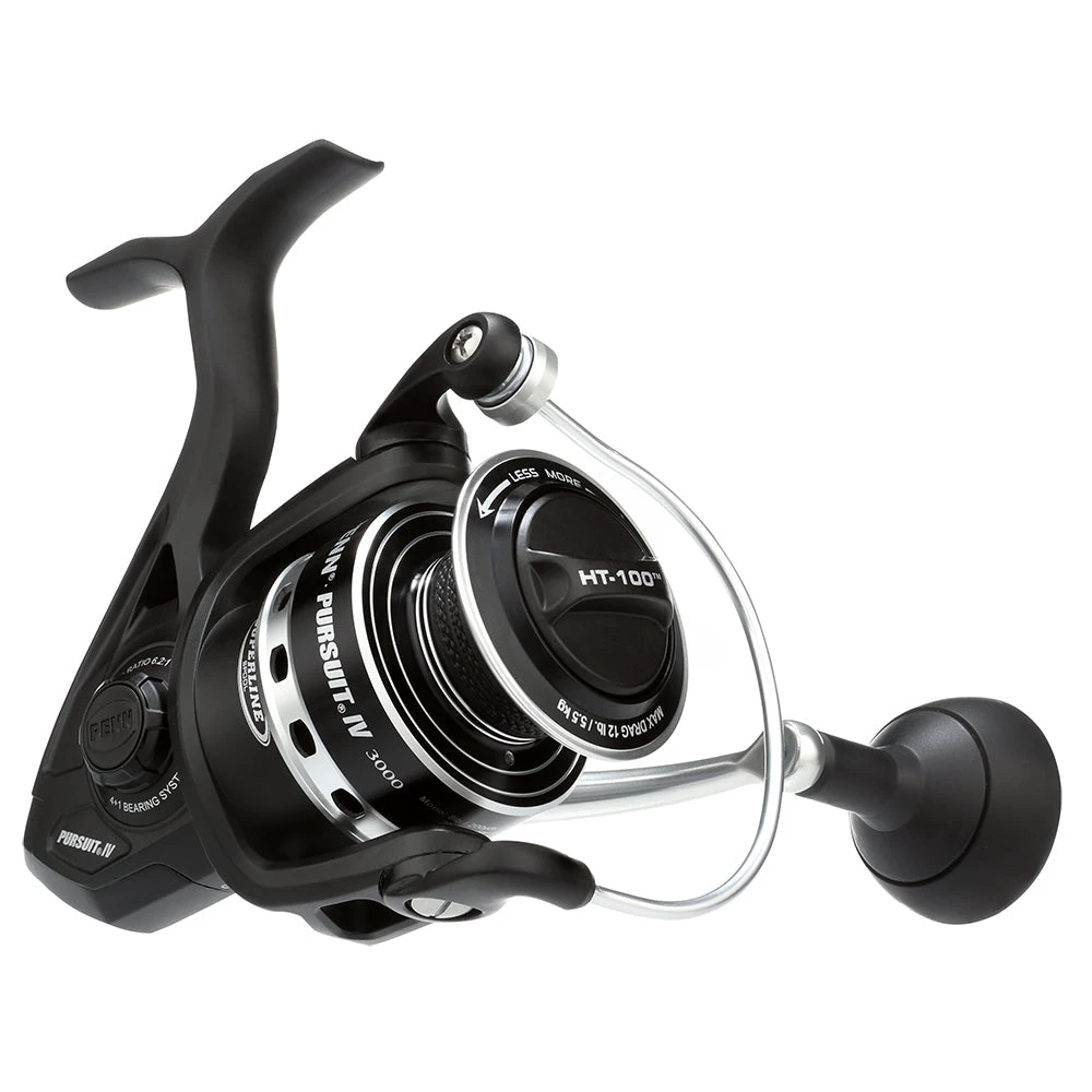 The PENN® Pursuit® IV features durable construction and the smooth gear system anglers expect from PENN®. This reel features an ultra-lightweight, corrosion-resistant graphite body and powerful HT-100™ drag system making the Pursuit® IV a great value for the money for saltwater anglers. Available in six sizes from 2500 to 8000, the Pursuit® IV has a reel for most fisheries. The Instant Anti-Reverse bearing eliminates even the slightest rotor back play for instant hook-ups every time, while the 4 sealed stainless steel ball bearings provide smooth retrieves.