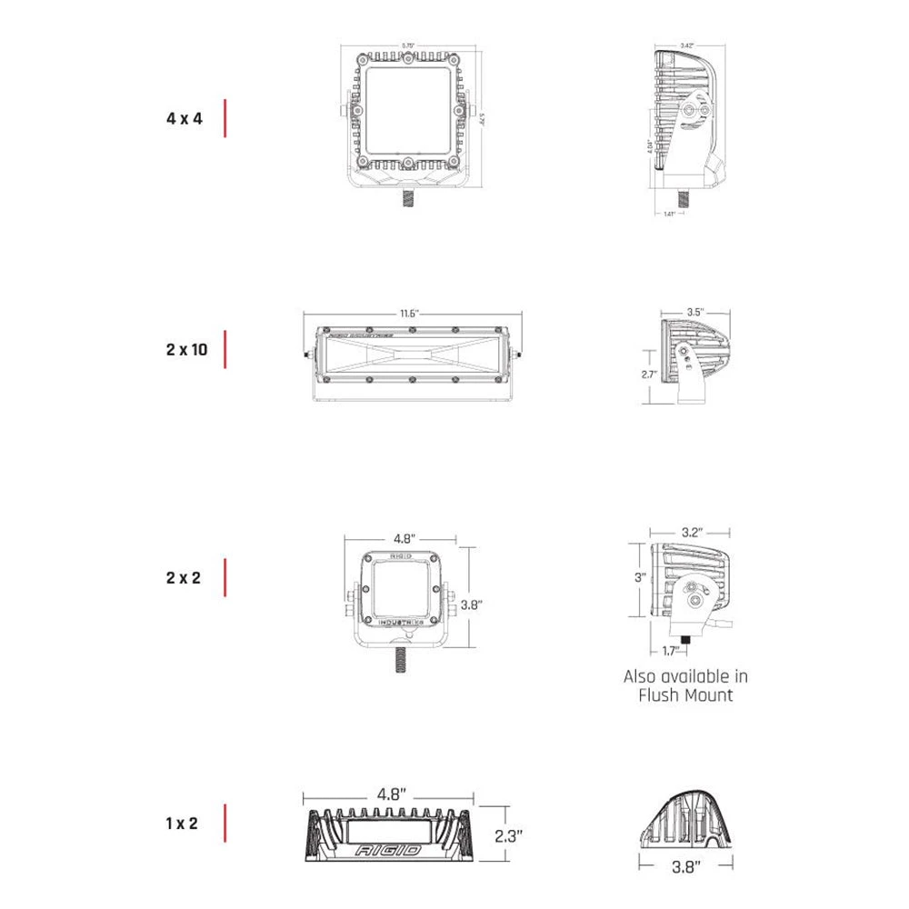 LED Scene Lighting by RIGID Industries is now available for any area lighting application using DC power. Utilizing the latest LED technology, RIGID Industries perfects their innovative rugged design, thermally optimized heatsink, extreme output, and does it with minimal amp draw for the total lighting solution. With a 115-degree horizontal spread, this product will light the surrounding area perfectly.