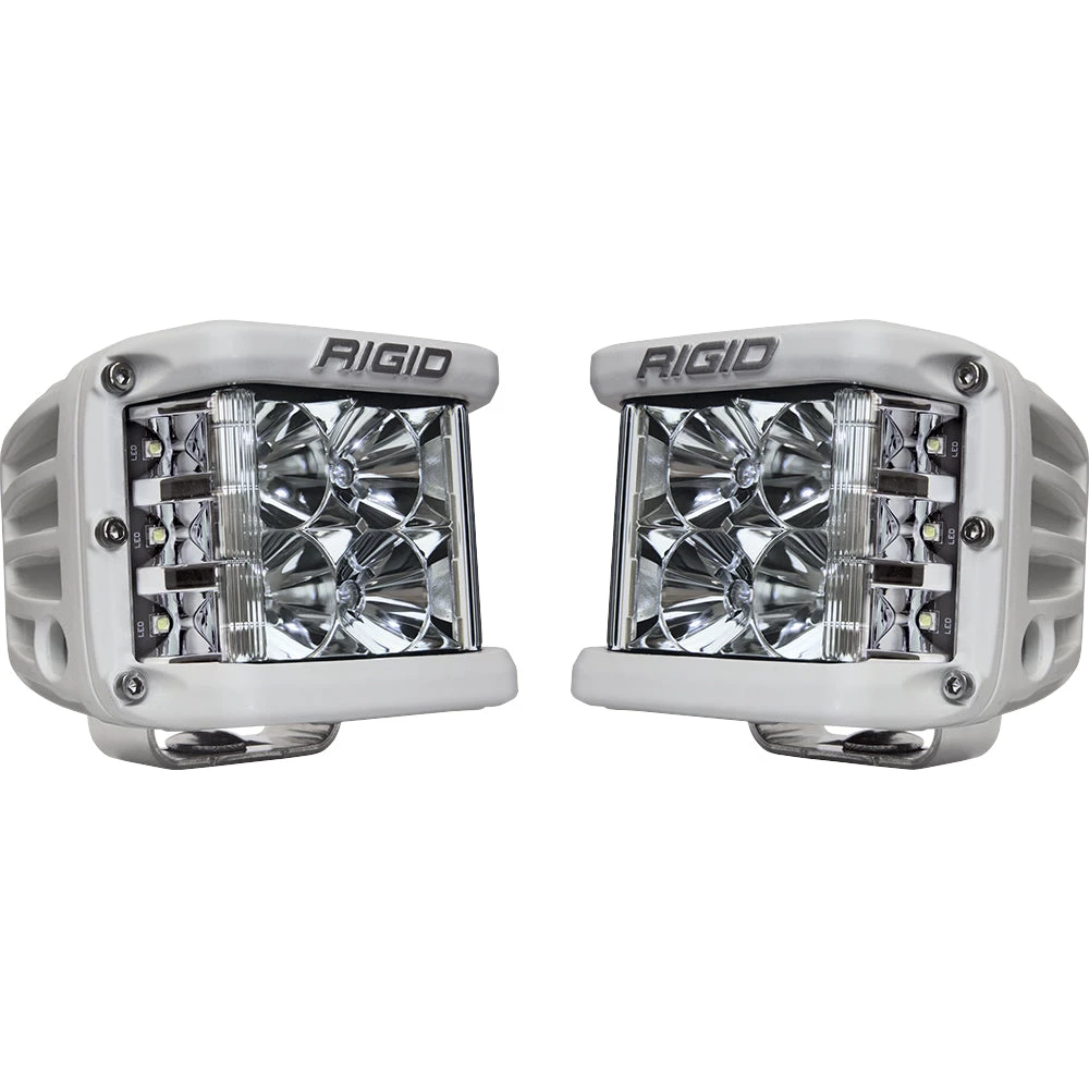 One of RIGID’s most versatile, compact lighting solutions just got better with the RIGID D-SS PRO, Dually-Side Shooter Professional Race Output LED pod. Perfect for any application that requires a wide spread beam, including A-Pillars, Fog Lights, and motorcycle applications. The D-SS PRO incorporates powerful optics and recently improved LED technology for greater output with the added benefit of additional LEDs aimed to the side for a much broader beam. The D-SS PRO packs a powerful punch with up to 102% more raw lumens depending on the optics chosen The D-SS PRO fixtures boast up to 120-degrees of horizontal lighting coverage when used in pairs or when used in the single light applications. The main forward-facing LEDs are available with RIGID’s advanced Spot, Flood, or Driving optics, so there’s a D-SS PRO lighting solution for nearly any application. The D-SS PRO LED lights are available in pairs with three side-shooting LEDs on one side of each fixture, or in single applications with a pair of side-shooting LEDs on both sides of the fixture. Only RIGID provides a broad, powerful lighting solution in such a compact package.