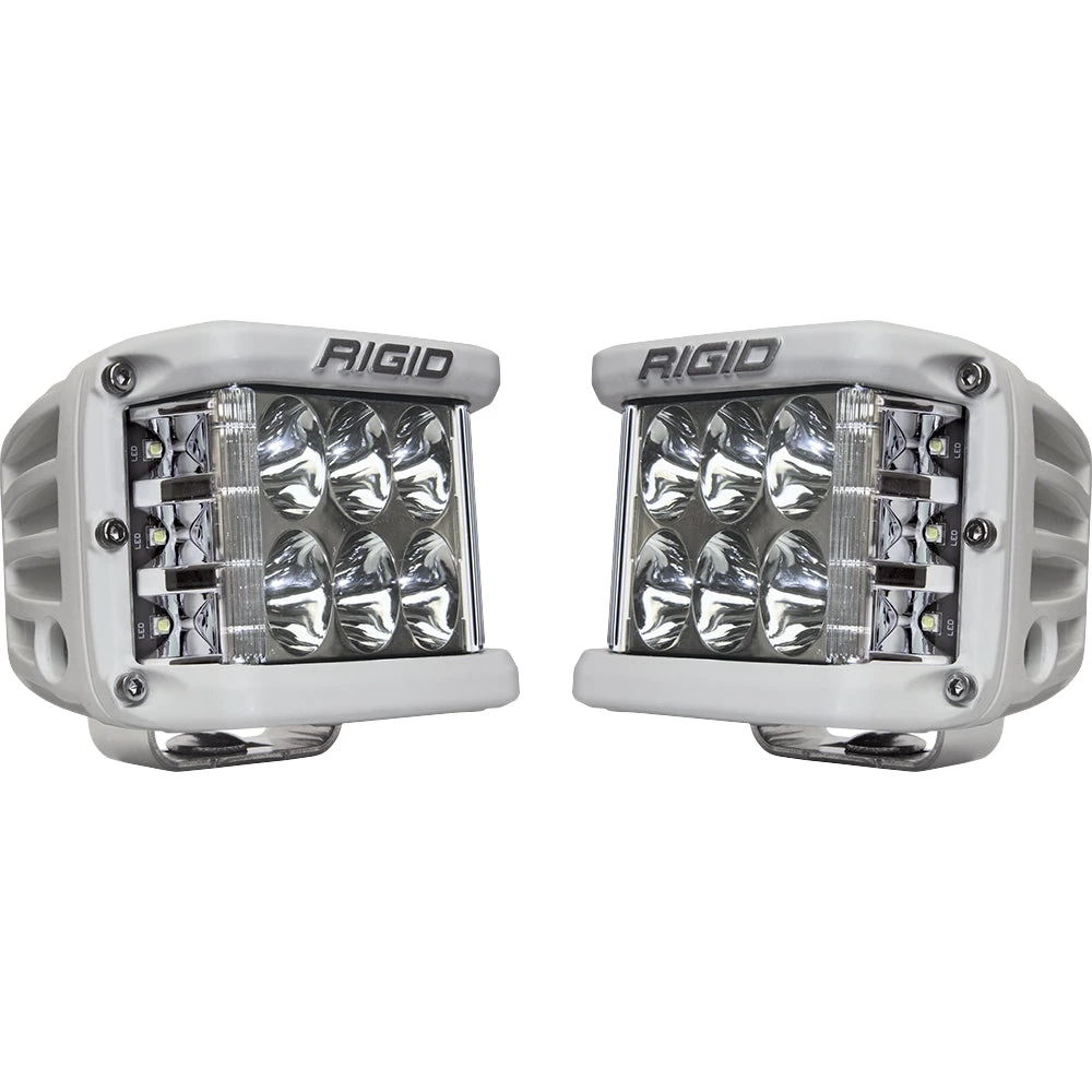 One of RIGID’s most versatile, compact lighting solutions just got better with the RIGID D-SS PRO, Dually-Side Shooter Professional Race Output LED pod. Perfect for any application that requires a wide spread beam, including A-Pillars, Fog Lights, and motorcycle applications. The D-SS PRO incorporates powerful optics and recently improved LED technology for greater output with the added benefit of additional LEDs aimed to the side for a much broader beam. The D-SS PRO packs a powerful punch with up to 102% more raw lumens depending on the optics chosen The D-SS PRO fixtures boast up to 120-degrees of horizontal lighting coverage when used in pairs or when used in the single light applications. The main forward-facing LEDs are available with RIGID’s advanced Spot, Flood, or Driving optics, so there’s a D-SS PRO lighting solution for nearly any application. The D-SS PRO LED lights are available in pairs with three side-shooting LEDs on one side of each fixture, or in single applications with a pair of side-shooting LEDs on both sides of the fixture. Only RIGID provides a broad, powerful lighting solution in such a compact package.