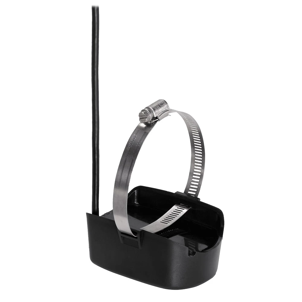 Dual/Side Imaging, 20/60/180 degree, 200/83/455 kHz with built in temperature. 15′ cable. Includes a hose clamp for attaching to trolling motor.